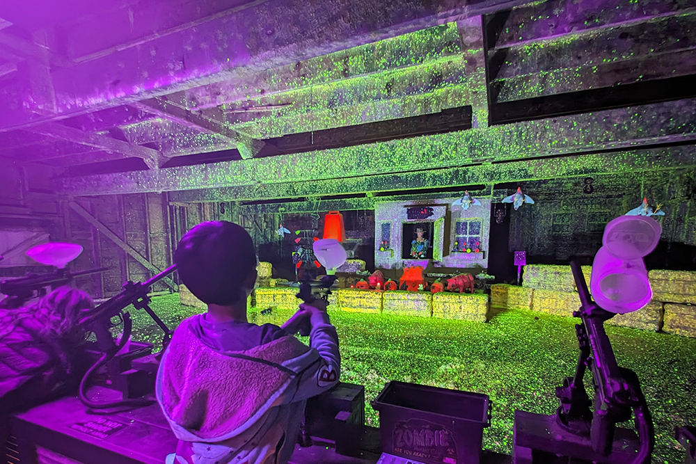 Farmageddon Paintball Shootout: The zombie farm animals need your help! Take aim under the black lights with interactive targets.